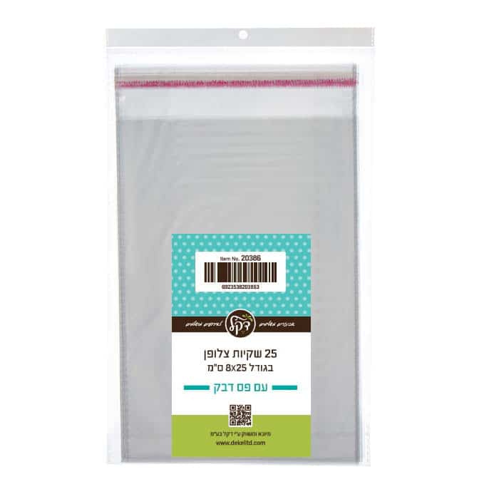 - גודל: בחרו מתוך שקיות צלופן גדלים המתאימים למוצר. תמיד כדאי לבחור מידה אחת גדולה יותר מהנדרש.