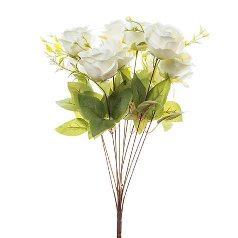 זר ורד פתוח 12 ענפים+ תוספות- לבן