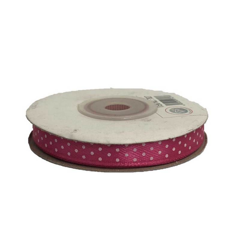 גליל סרט סאטן מנוקד רוחב 1 ס”מ אורך 25 יארד-ורוד פוקסיה/לבן